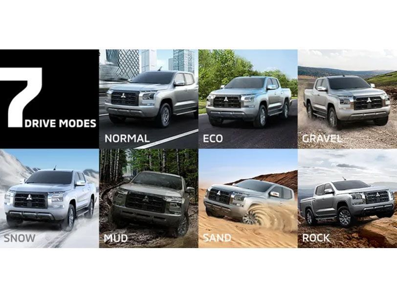 Exclusivo na categoria, o Drive Mode da Nova Triton oferece 7 opções de parametrizações de direção, ajustando a tração e a performance de acordo com o piso escolhido. Não importa em qual situação esteja, a Triton se adapta ao terreno e facilita qualquer transposição, entregando máximo conforto e confiabilidade ao motorista. Destaque para o exclusivo modo GRAVEL, que permite a máxima velocidade em cascalho ou pisos escorregadios.